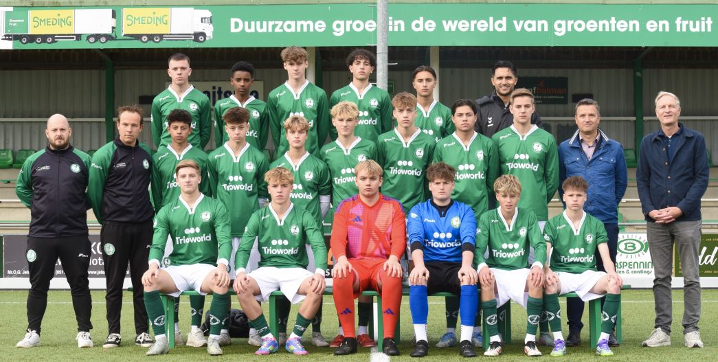 Zaterdag was de presentatie op het Oostersportpark, waarbij directeur Huijsman met Zeerobben JO17-1 op de foto ging, vlak voor de wedstrijd tegen het Winschoter WVV.