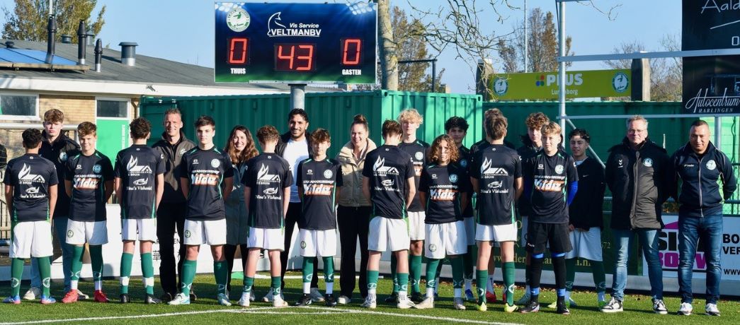 Mooi om te zien hoe soms iets tot elkaar kan komen. Binnen de selectie van de JO15 bestond al een tijdje de wens m.b.t. de aanschaf van nieuwe inloopshirts die gedragen worden bij de warming-up. Drie ondernemers vingen dit op, staken de koppen bij elkaar en voilà : afgelopen zaterdag konden de nieuwe shirts aan de spelers worden uitgereikt in het bijzijn van de sponsoren: Nina’s Vishandel, Allroundservice de Bruin en Stucadoorsbedrijf Yildiz. Wat een prachtig initiatief! JO15-1 zal ze in de hoofdklasse met trots dragen bij aanvang van elke wedstrijd.