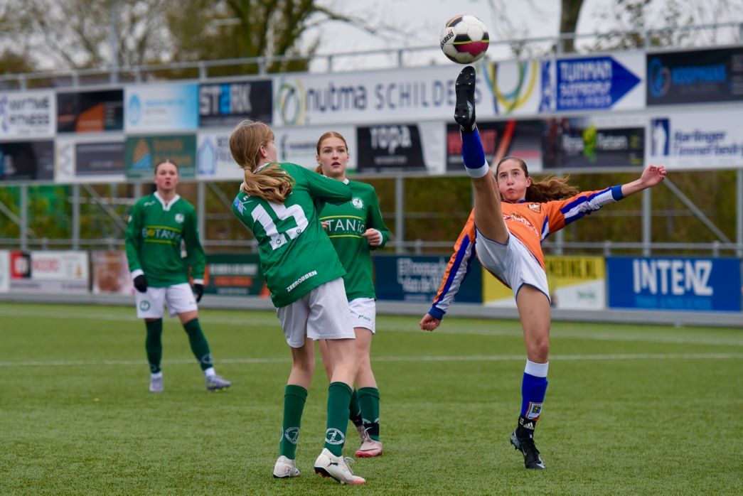 Wederom winst voor MO15-1. De meiden wonnen met maar liefst 9-1 van Amelandia. Foto: Frans Bode.